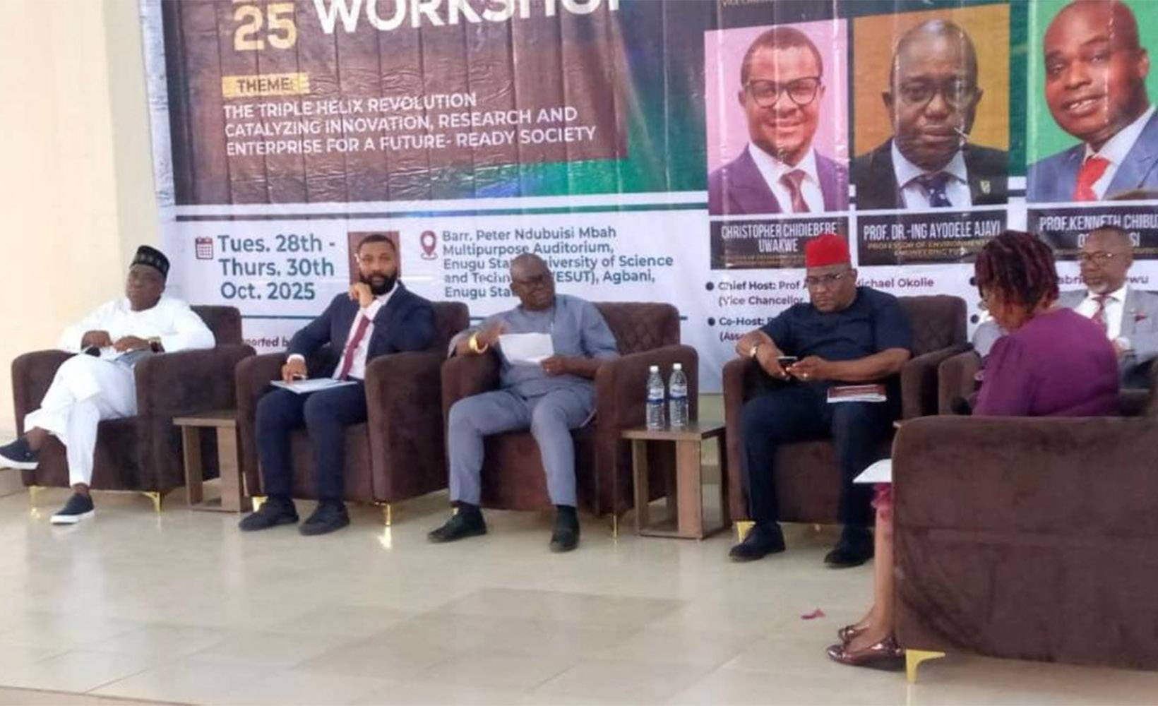The Director-General/Chief Executive Officer of Projects Development Institute (PRODA), Enugu, Engr. Dr. Peter Okwudilichukwu Ogbobe doing what he knows how to do best as a member of Panelist at the 2025 International Workshop, ESUT Agbani, Enugu state, Nigeria with...